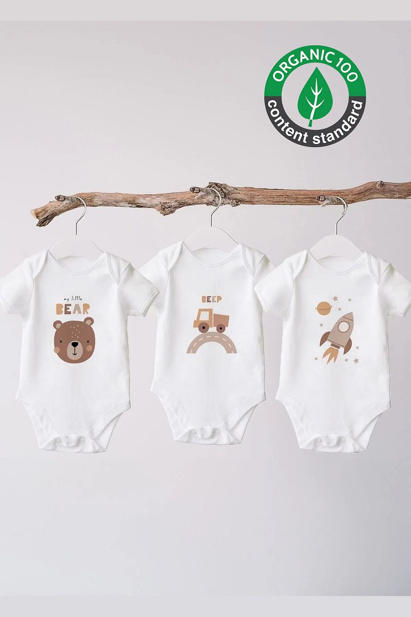 Lilabio 100% Organic Cotton 3-Pack Printed Short Sleeve Baby Bodysuit Bear