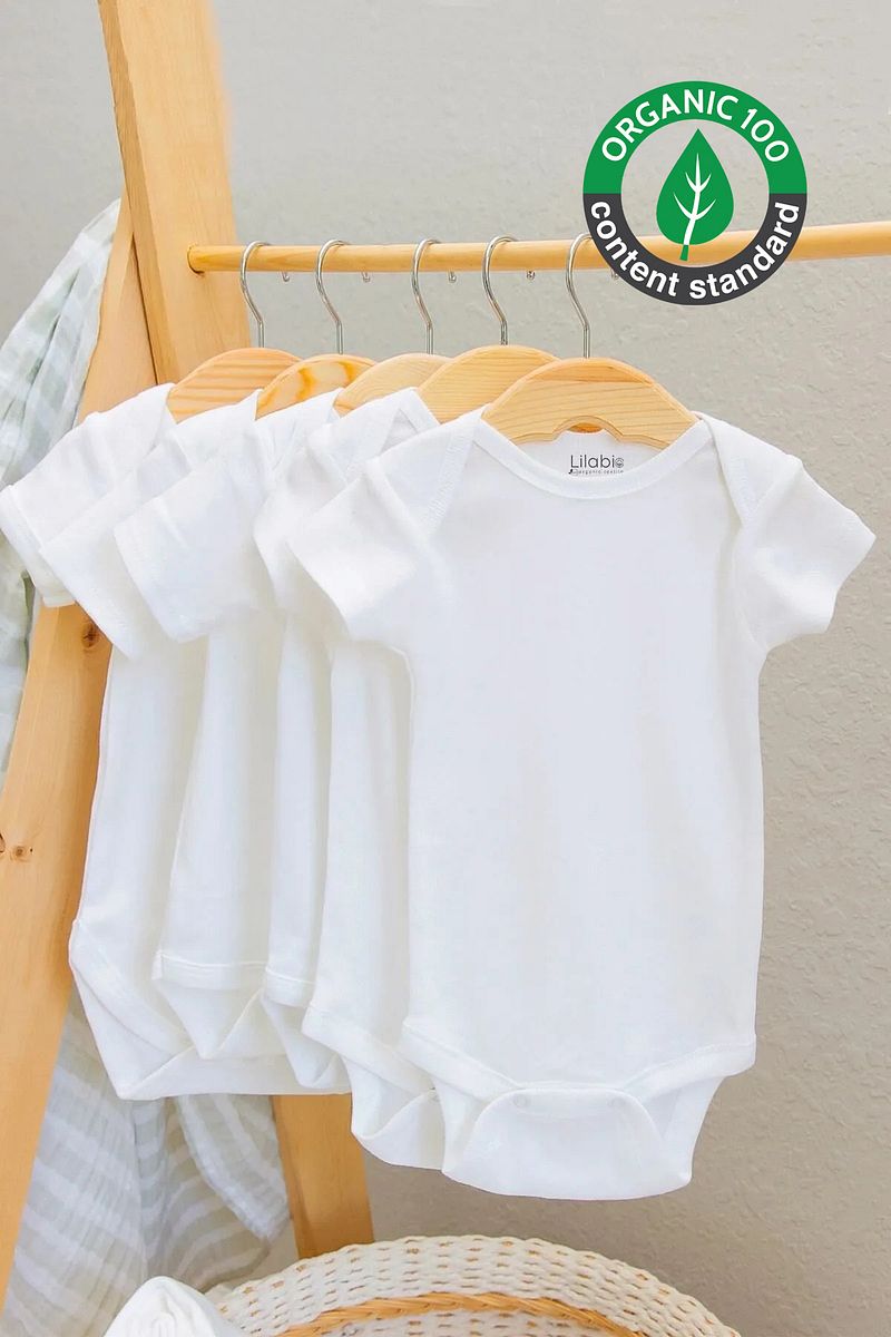 Lilabio 100% Organic Cotton 5-Pack White Short Sleeve Baby Bodysuits