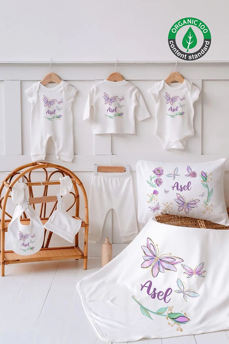 Introduce your little one to the world in style with the Lilabio 100% Organic Customized Summer Hospital Set. This delightful 10-piece set, adorned with a charming butterfly design, is perfect for welcoming newborns. Made from soft, breathable organic cotton, it ensures your baby’s comfort and safety right from the start. Each piece can be personalized with your baby’s name, making it a unique and memorable gift for new parents. Ideal for summer outings and hospital stays, this set combines practicality with a touch of whimsy, setting the stage for your child’s first adventures.