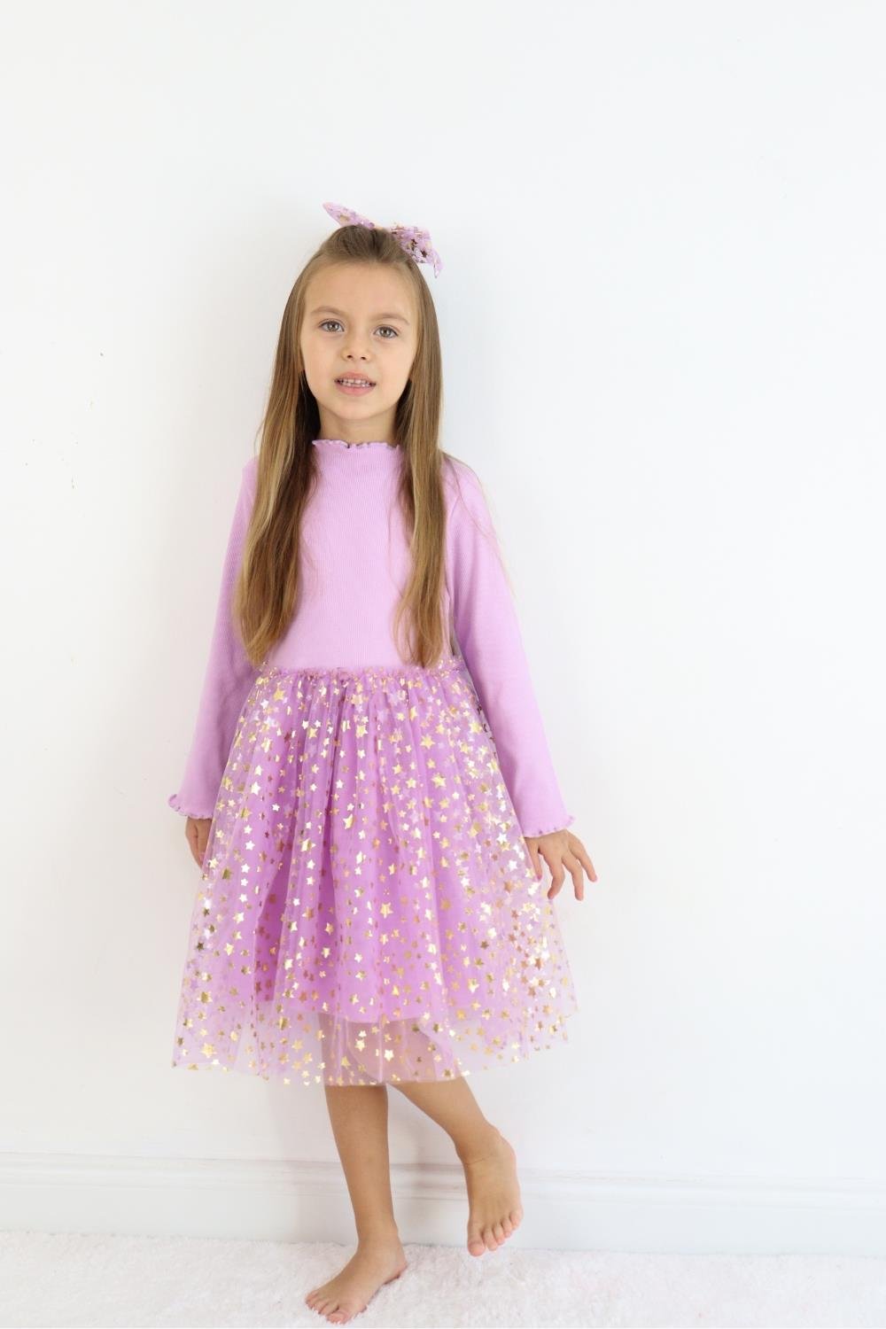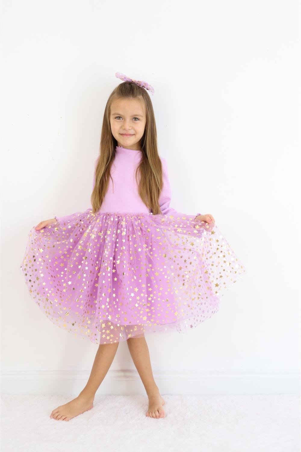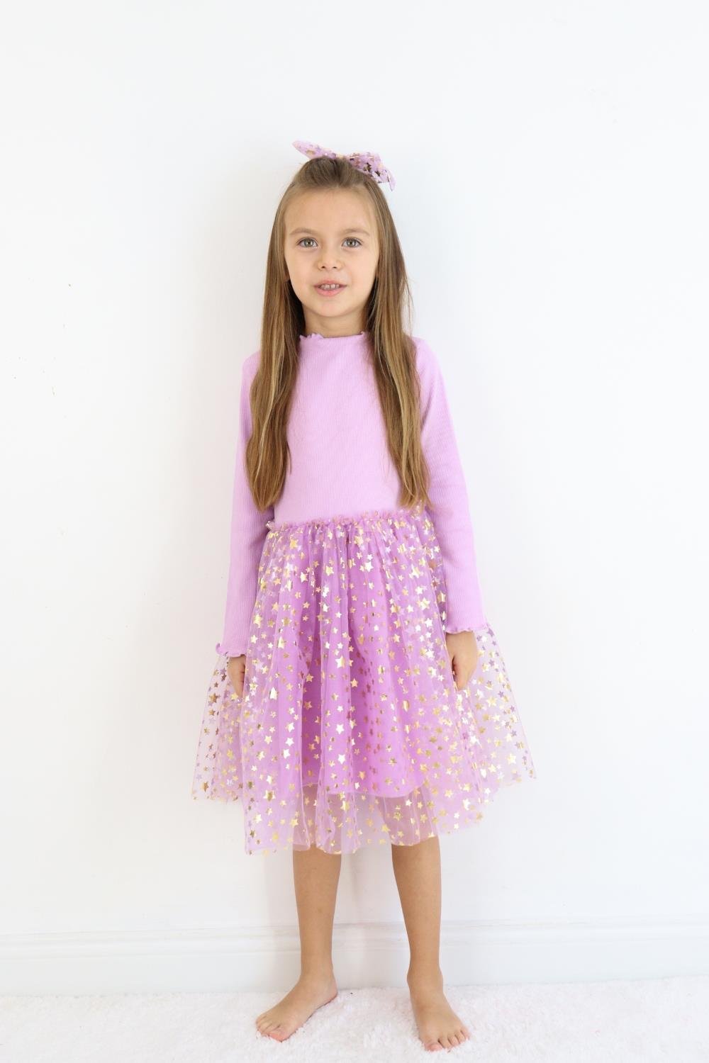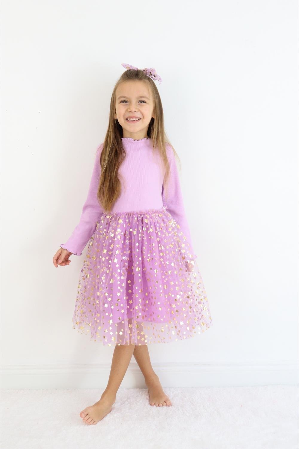 Be the first to review “Lilac Star Print Tulle Skirt Dress for Girls”