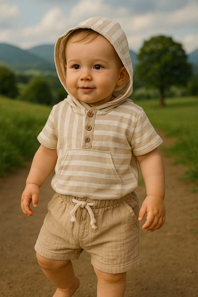 Lino Baby Hooded Muslin Shorts Set for Boys