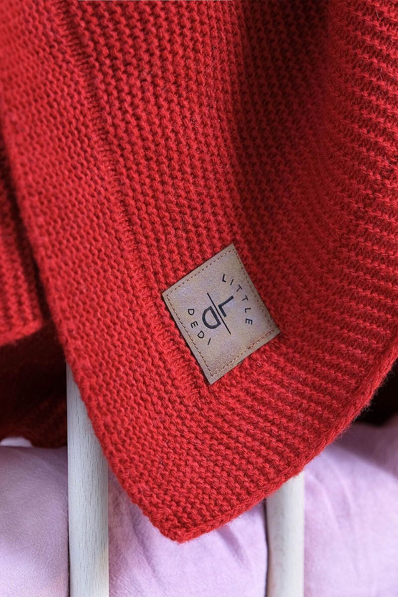 LITTLE DEDI Alina Knitted Baby Blanket, Soft Lightweight Swaddle Cover, Red 80x100 cm