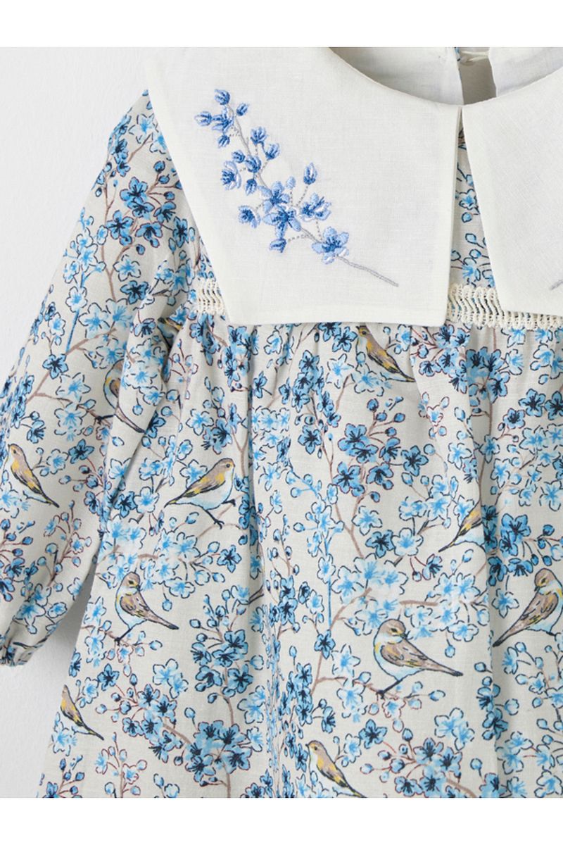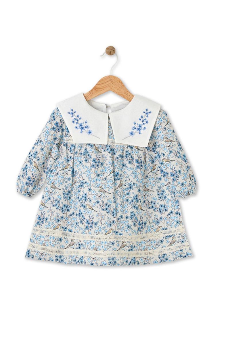 Maya And Luca Bloomy Spring Long Sleeve Embroidered Blue Dress