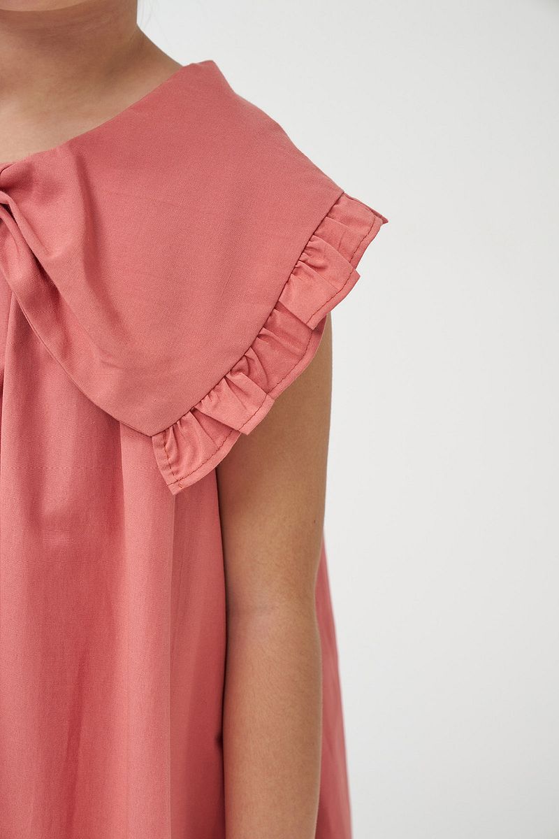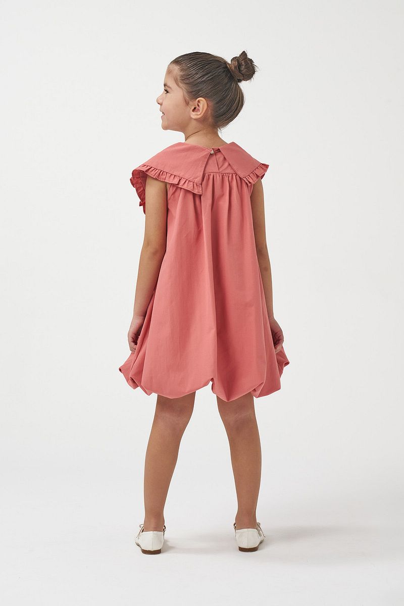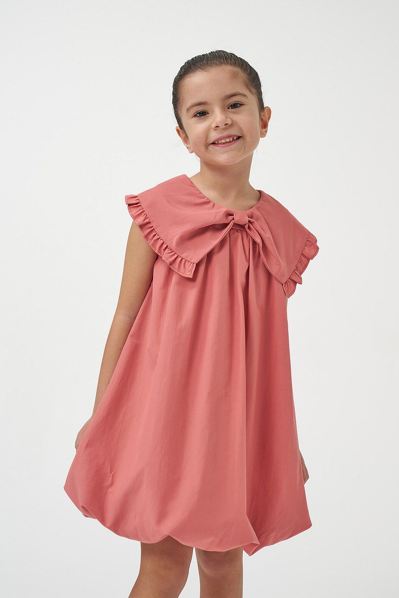 Minipodyum Girls' Bow Collar Woven Summer Balloon Dress