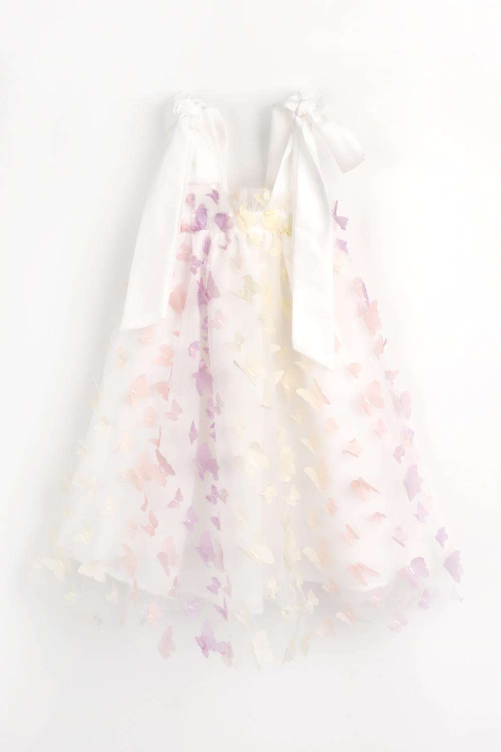 Multicolored Shoulder Tie Butterfly Appliqué Dress for Girls - Nikki