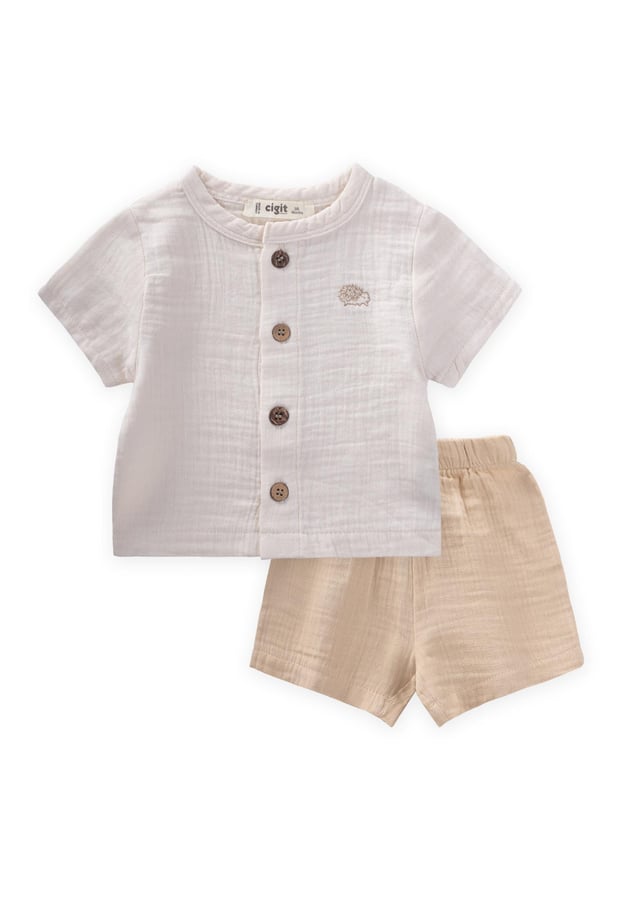 Organic Hedgehog Embroidered Muslin Set 0-5 Years Ecru