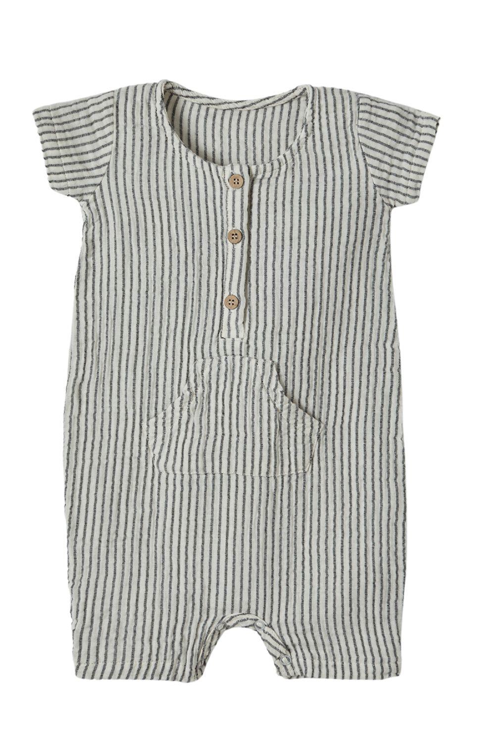 OrganicEra Organic Muslin Romper, Anthracite Striped