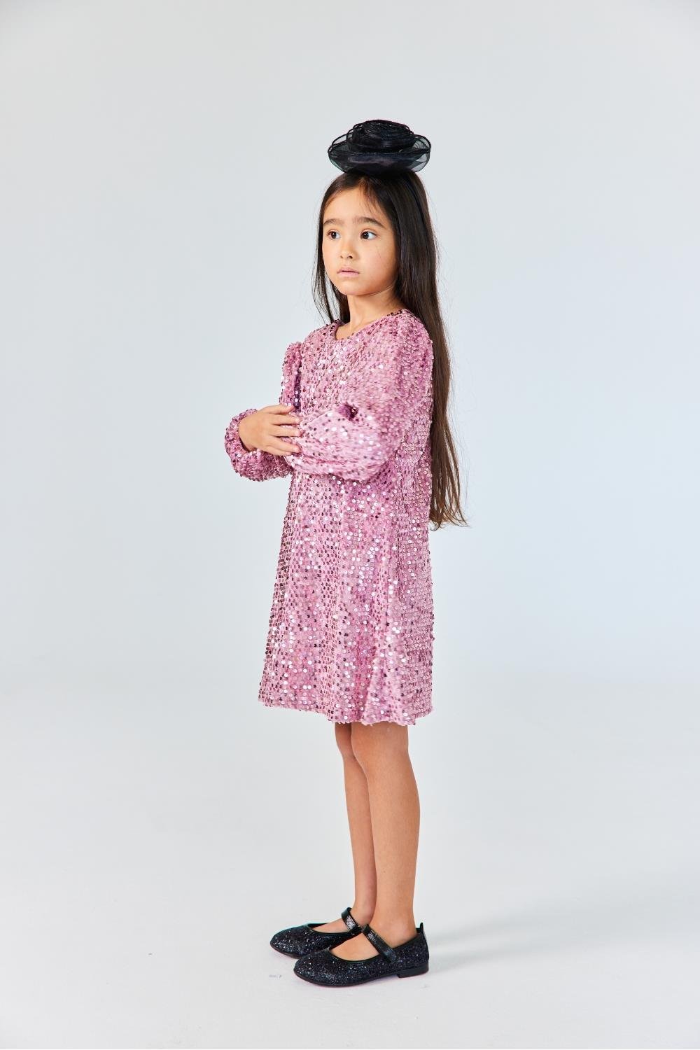 Pink Velvet Dress with Sequins for Girls – Oriel