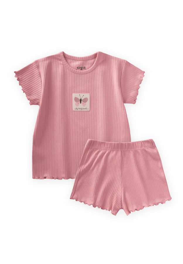 Ribbed Shorts Set for Ages 1-7 in Dusty Pink