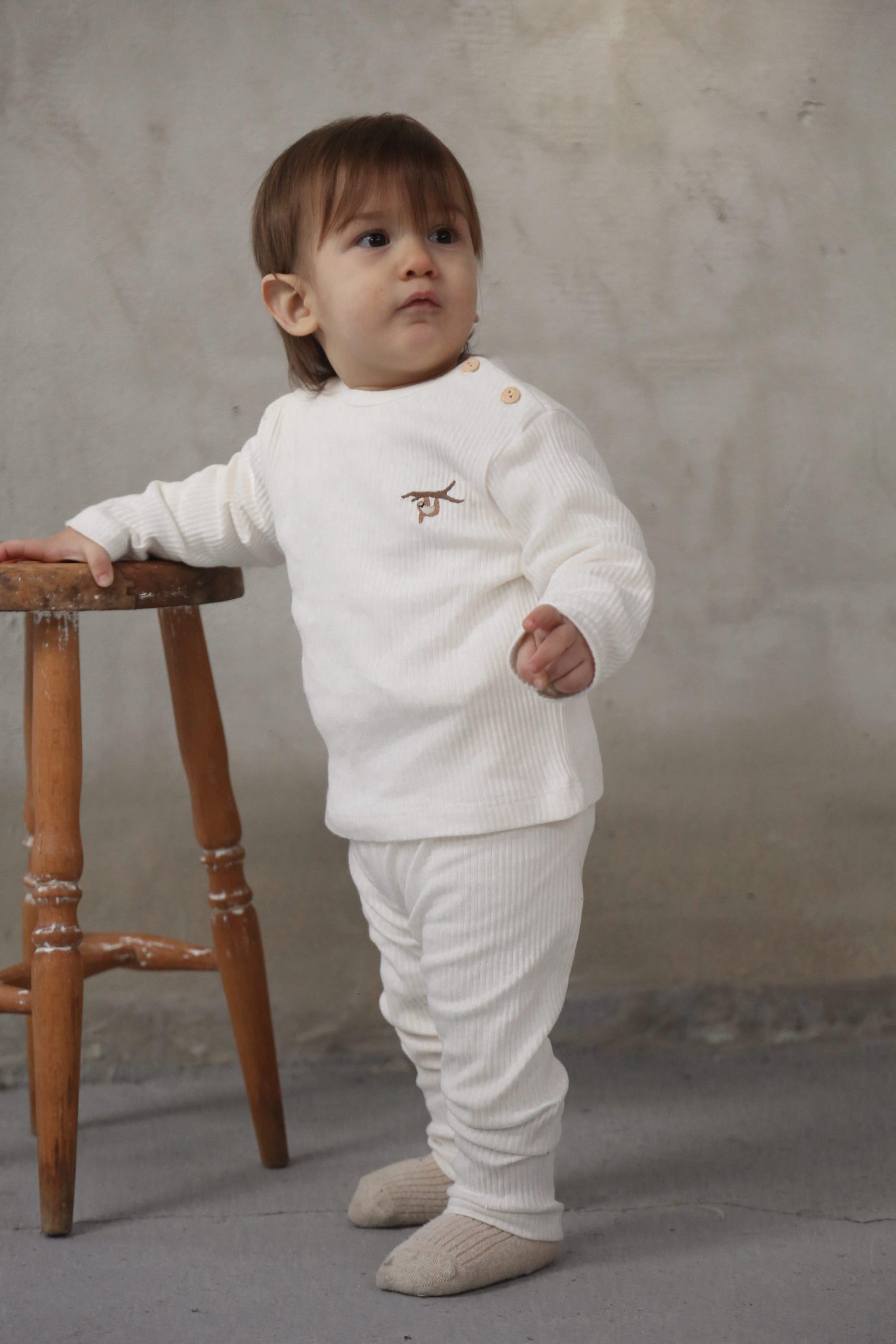 This adorable Sloth White Top and Bottom Set is designed with your baby’s comfort in mind, featuring a stylish combination of a long-sleeve shirt and leggings. Crafted for year-round wear, it allows for freedom of movement while keeping your little one looking chic. The buttoned collar not only adds a touch of elegance but also ensures easy dressing. Made from stretchy and durable ribbed fabric, it guarantees a perfect fit and comfort. With an elastic waistband for added convenience, this timeless basic silhouette is ideal for everyday use and can be effortlessly paired with any bottom. Plus, it is produced in accordance with OEKO-TEX® standards, making it a safe choice for your baby’s delicate skin.