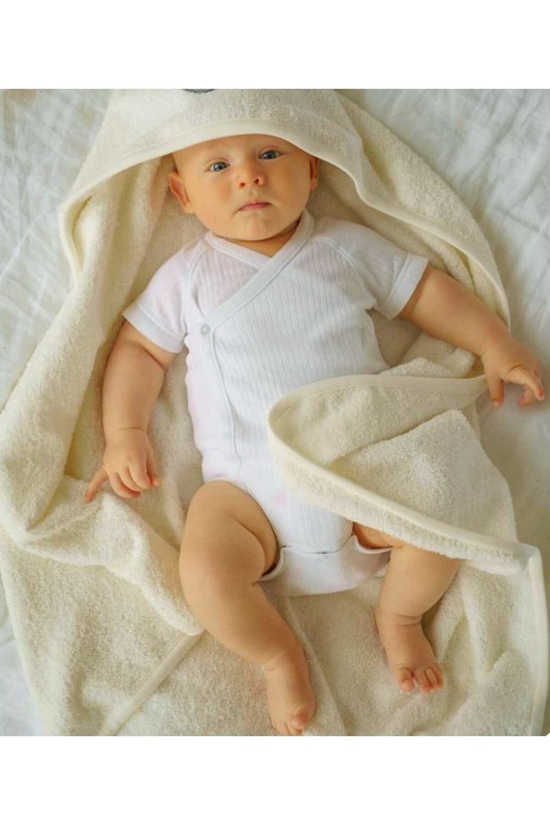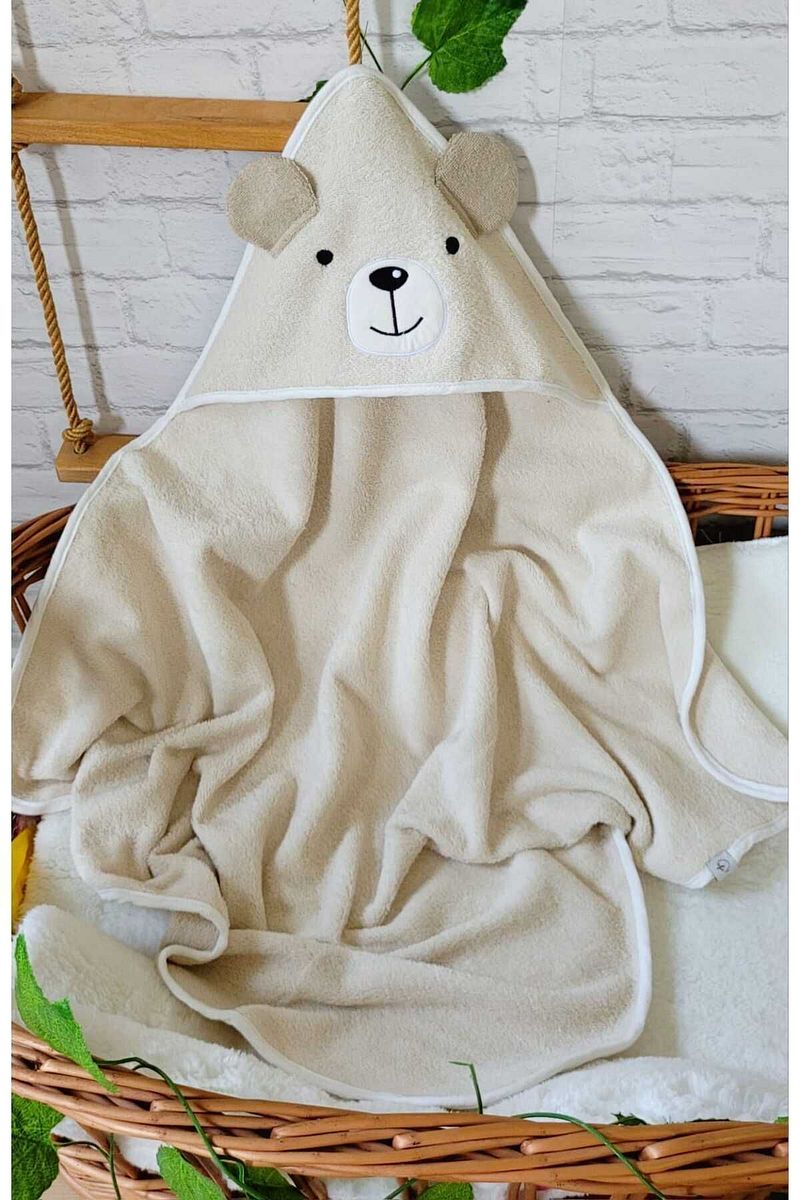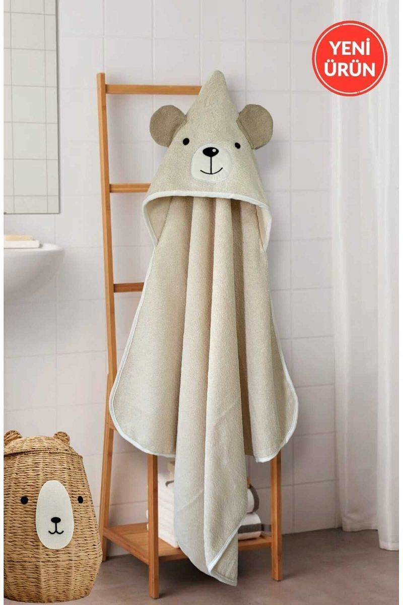 Soft Cotton Baby Bath Towel Wrap in Beige with Bear Design