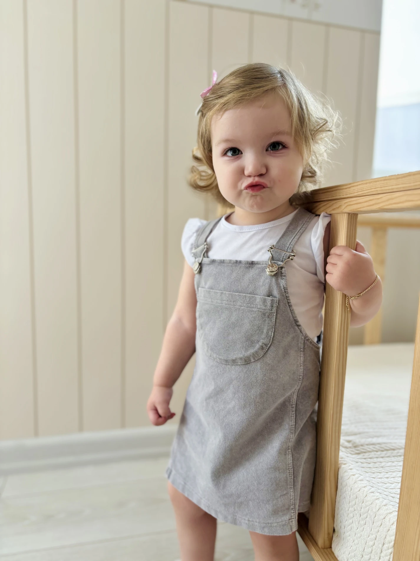 Dress your little one in style with this adorable soft stretch denim dress set, featuring a charming ruffled t-shirt. Perfect for any occasion, this outfit combines comfort and cuteness, making it a must-have for your child’s wardrobe. The playful design ensures your child can move freely while looking fashionable, whether they’re at a family gathering or enjoying a day out with friends.