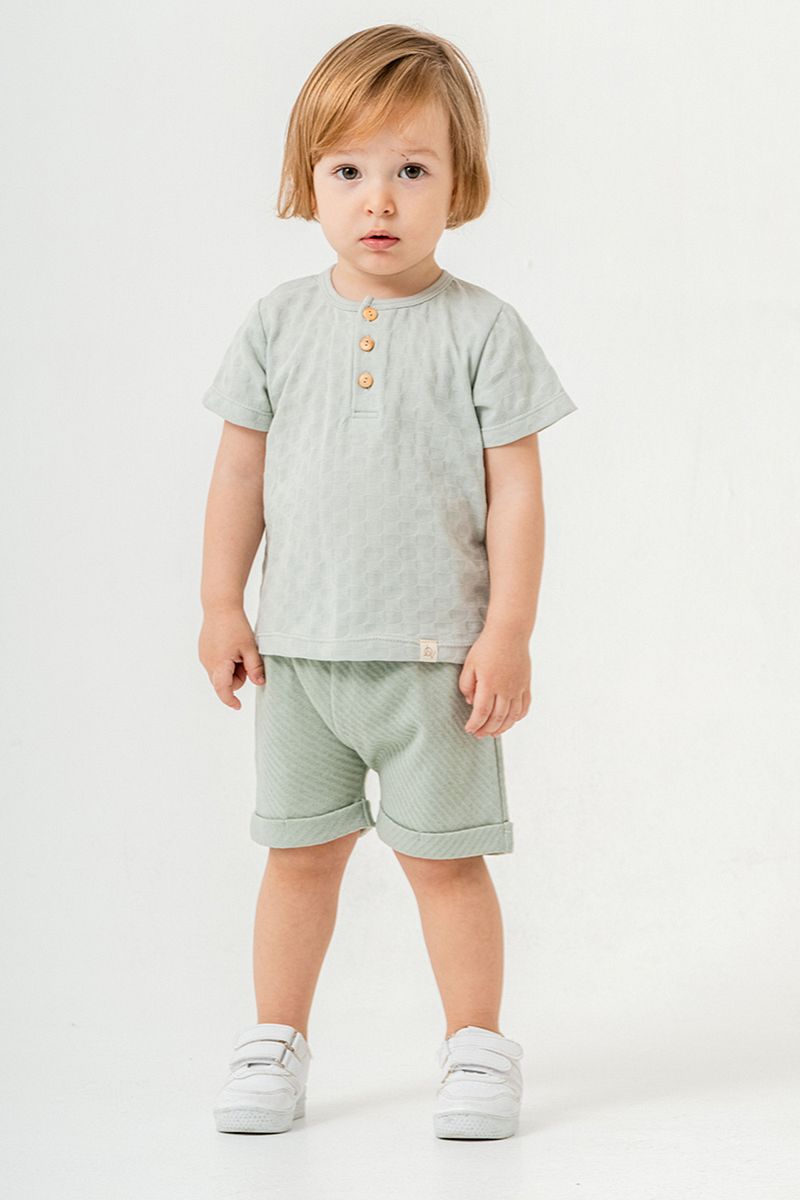 Trendy Green Cotton Shorts Set for Babies and Kids