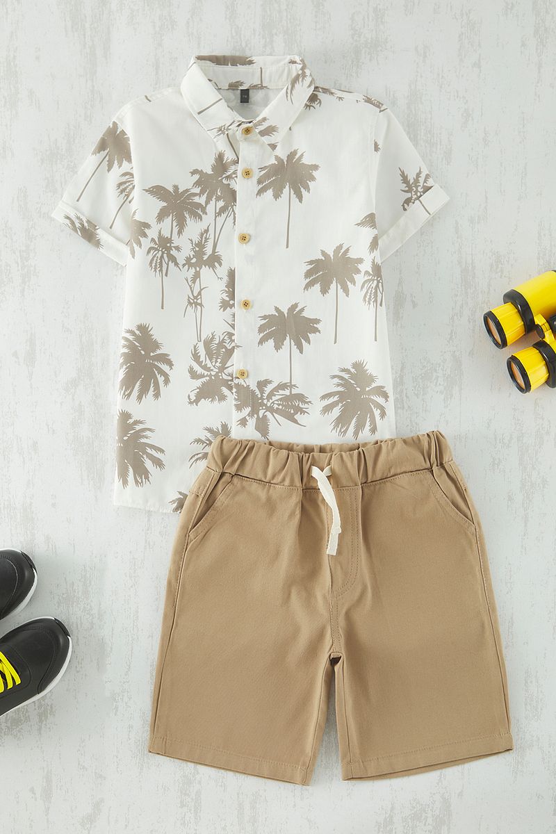 Trendyolmilla Kids Beige Cotton Printed Shirt and Shorts Set