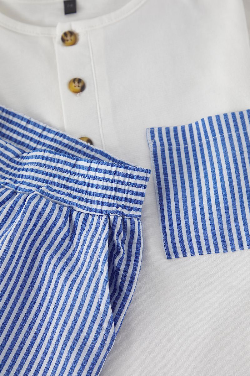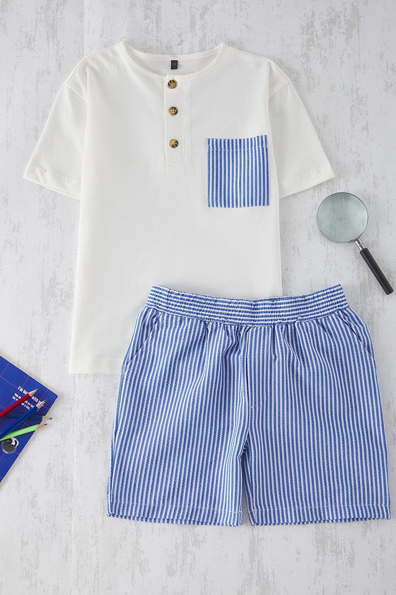 Trendyolmilla Kids Cream Boys’ 100% Cotton Striped Pocket Detail T-Shirt and Shorts Set