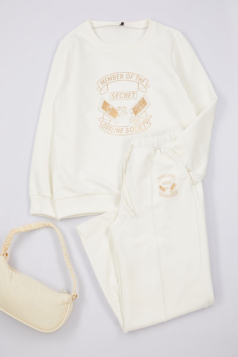Trendyolmilla Kids Cream Girls' Slogan Knit Set