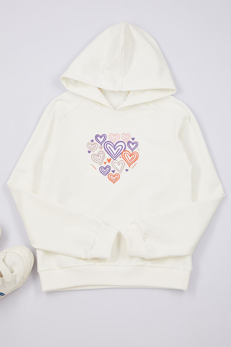 Trendyolmilla Kids Cream Heart Print Hooded Sweatshirt