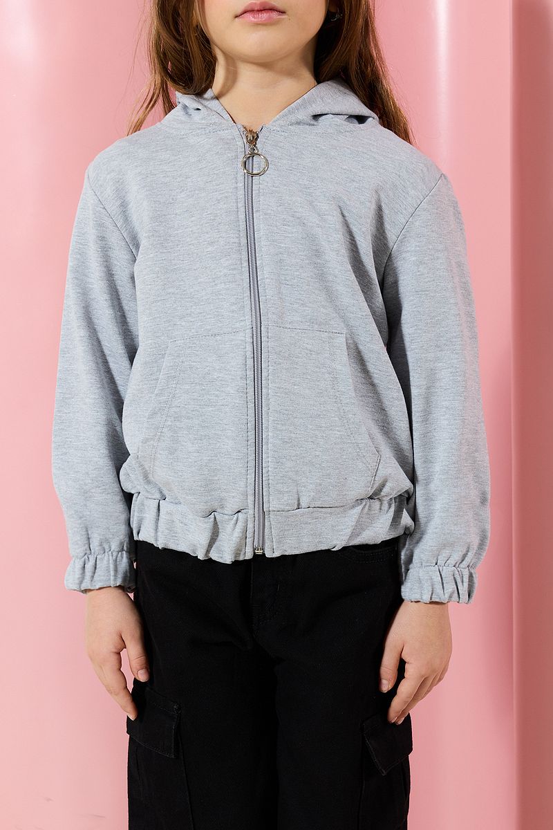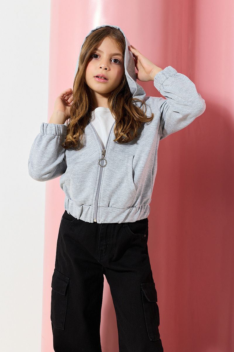 Trendyolmilla Kids Gray Melange Unisex Hooded Cotton Zip-Up Knit Cardigan
