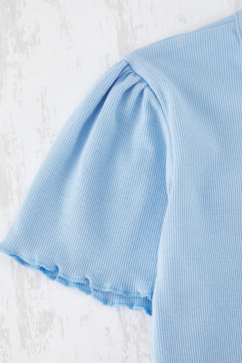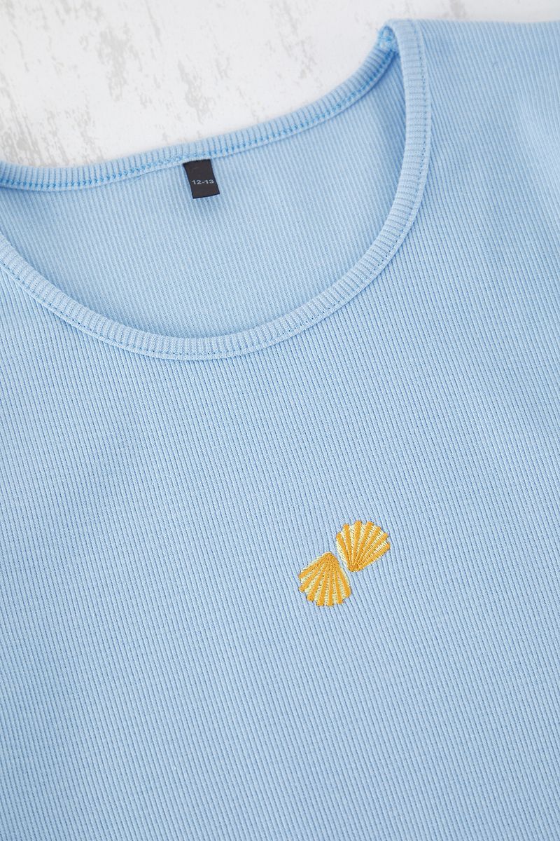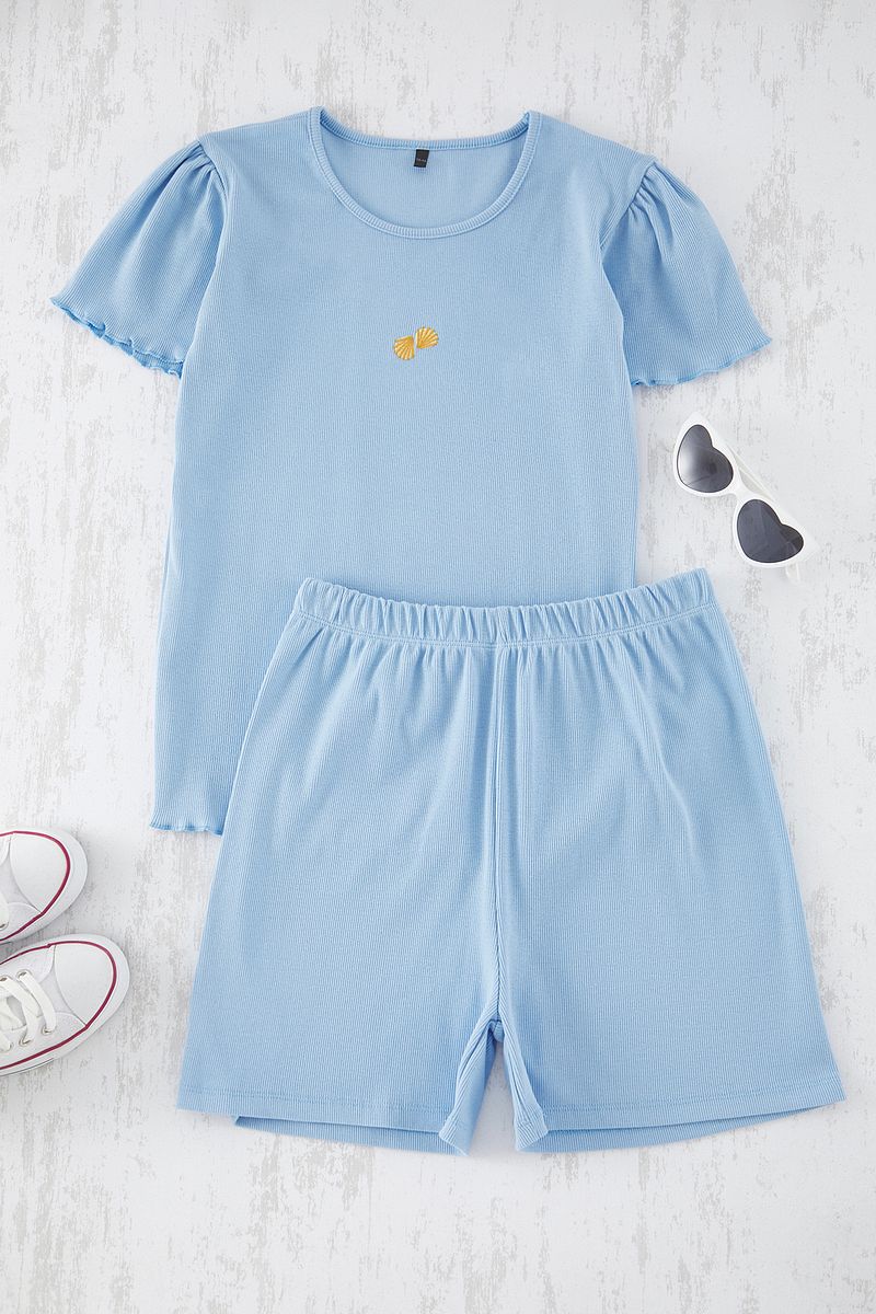 Trendyolmilla Kids Light Blue Cotton Minimal Embroidered T-Shirt and Shorts Set