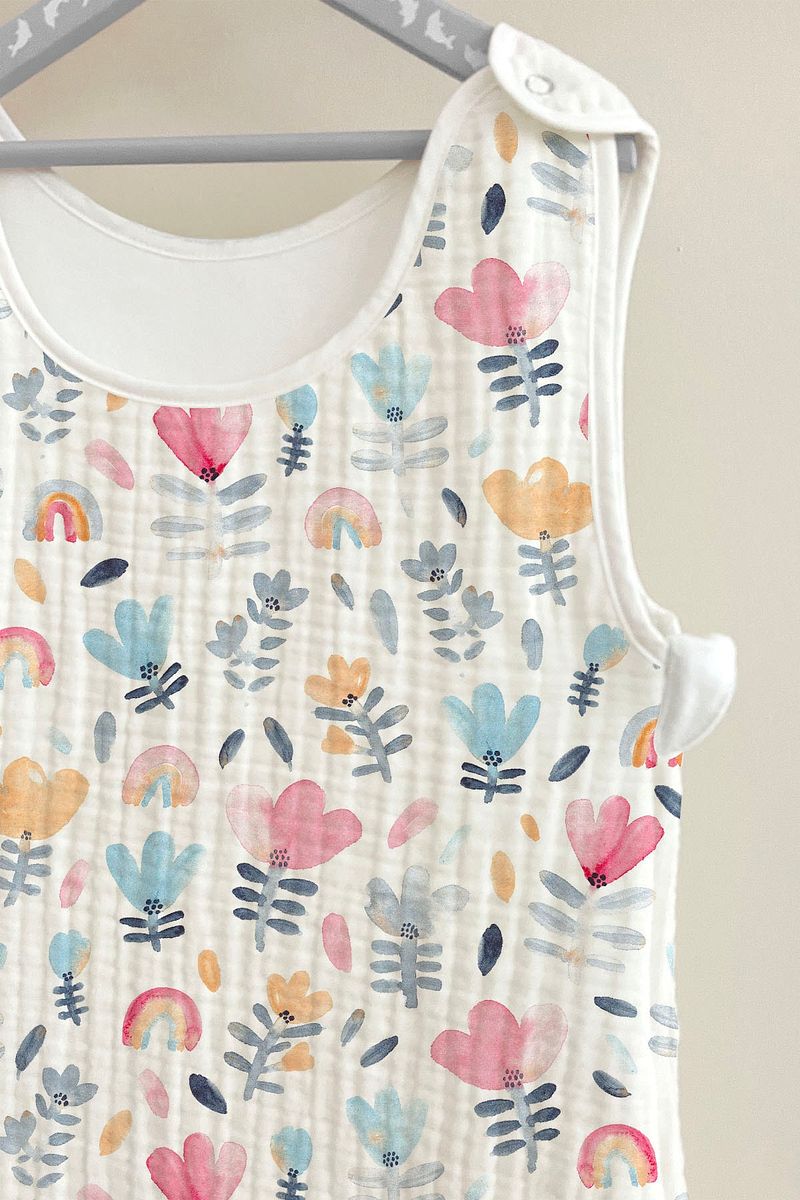 Tuğba Swan 4-Layer Muslin Baby Sleep Bag (0-18 Months) - World of Colorful Flowers