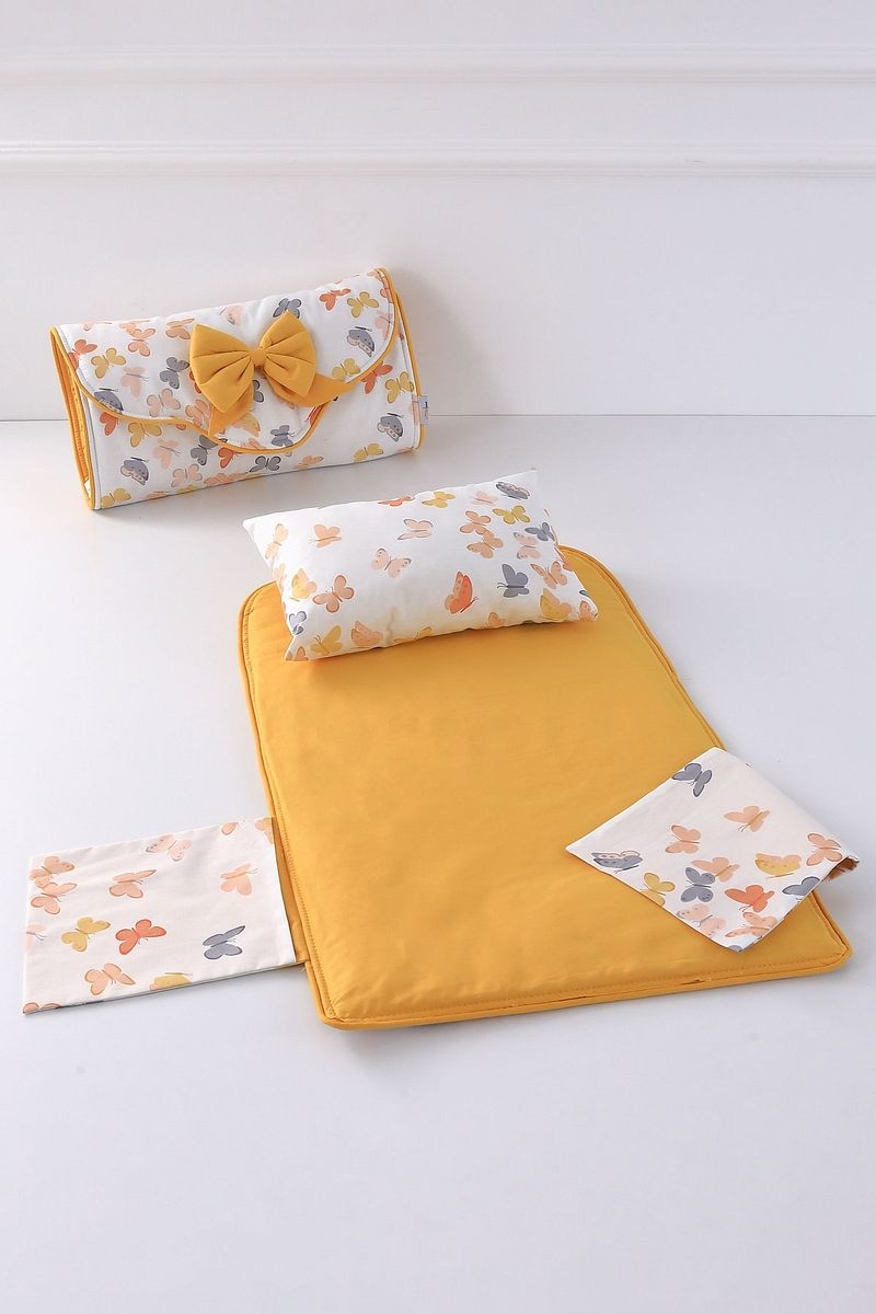 Umaybebek Changing Mat – With Bag – Mustard Butterfly