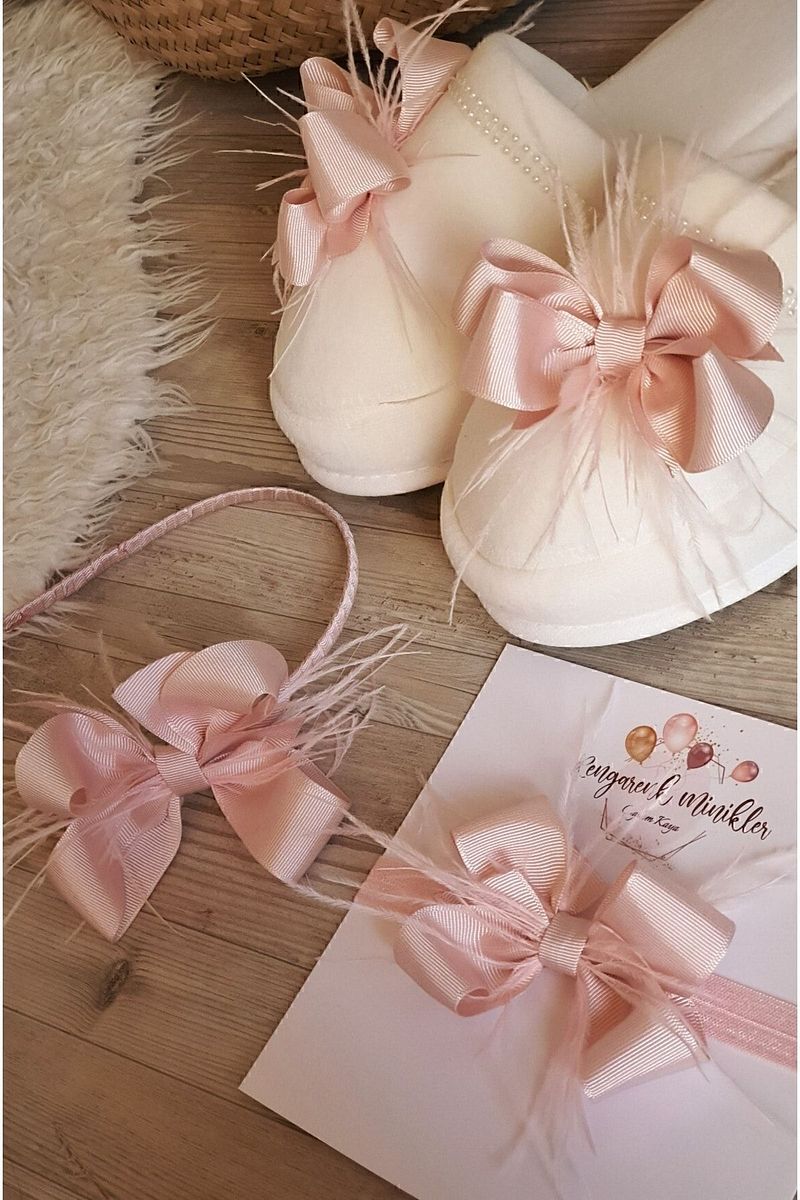 Dress your little one in style with our Colorful Little Ones Powder Pink Feather Bow Nursing Set, featuring an adorable headband and cozy slippers. This charming ensemble is perfect for new moms and their precious babies, creating a delightful look for those special moments. The soft powder pink hue and cute feather bow detail add a whimsical touch, making it an ideal choice for baby showers or welcoming home occasions. Let your baby shine in this fashionable yet comfortable outfit!