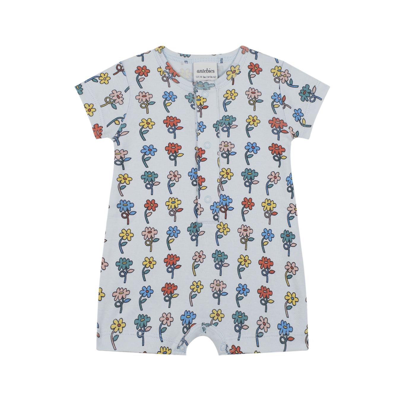 بدلة جسم قصيرة الأكمام مزينة برسومات زهور
