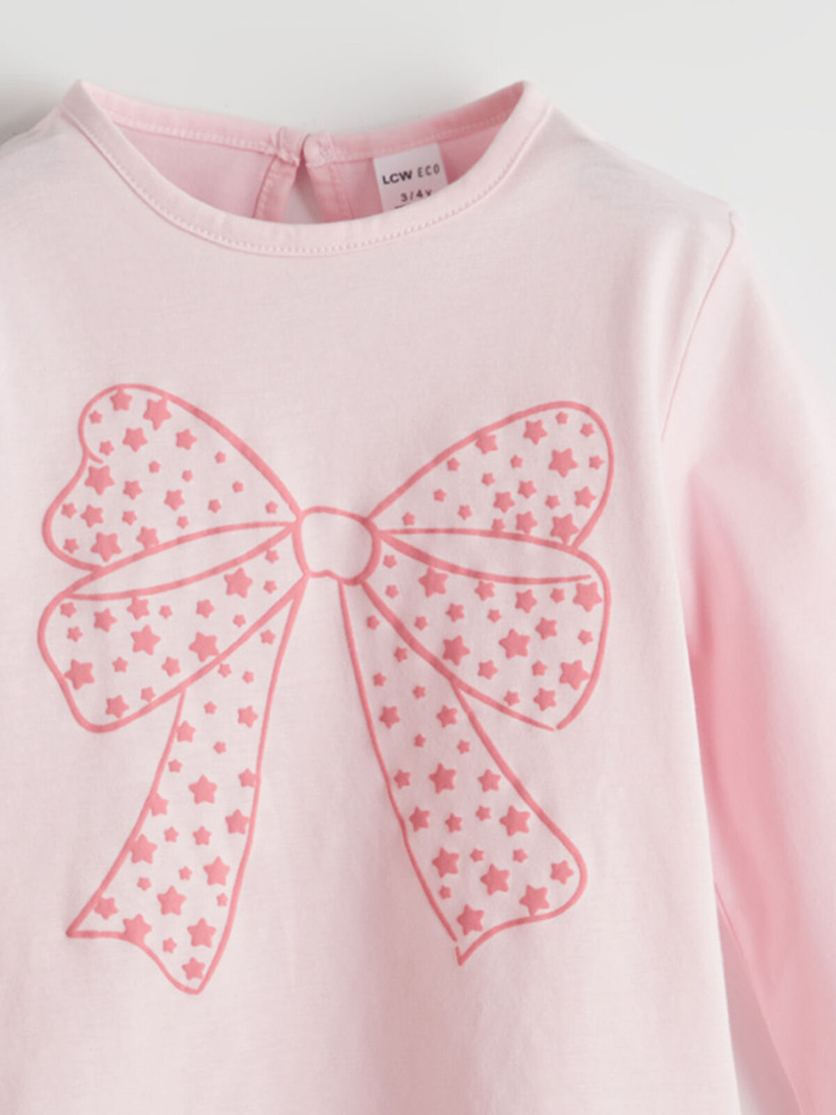 LCW ECO Pink Printed Crew Neck T-Shirt for Girls